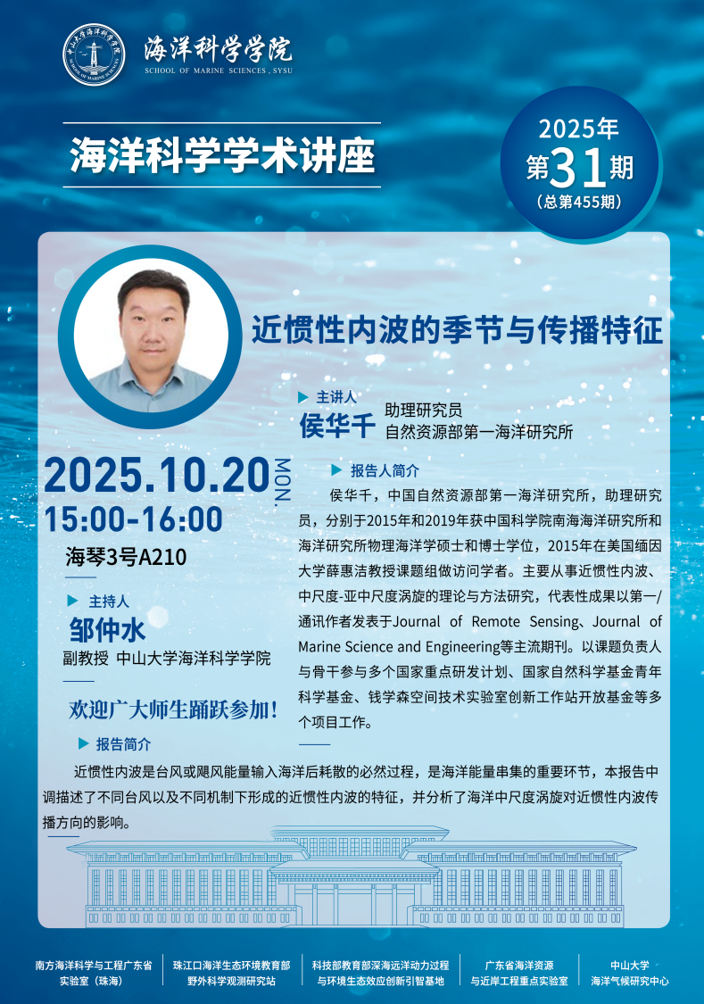 海洋科学学术讲座预告第455期:近惯性内波的季节与传播特征
