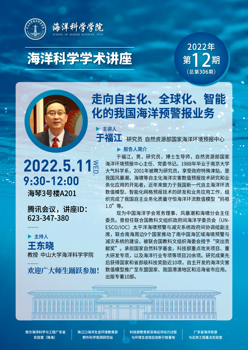 海洋科学学术讲座预告第306期:走向自主化、全球化、智能化的我国海洋预警报业务